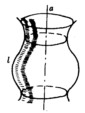一条平面曲线(包括直线)绕它所在的平面内的一条定直线旋转所形成的曲面.这条定直线叫做旋转轴.无论旋转到什么位置,这条曲线都叫做旋转面的母线.如图1中直线a是旋转轴,曲线l(不论旋转到什么位置)是母线.