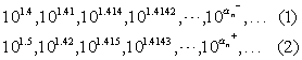 因为当底数大于1时,指数越大,这个幂的值也越大,所以数列(1)是递增数列,并且总小于101.5;同样数列(2)是递减数列,并且总大于101.4,即数列(1) (2)均是单调有界数列,故均有极限.因为