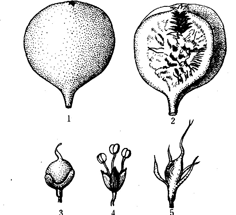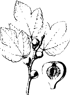 无 花 果 1. 果实; 2. 果实剖面; 3. 全花; 4. 雄花; 5. 雌花 用营养苗栽植后2~3年开始结果, 6~7年进入盛果期,经济寿命40~70年。具有一年多次结果习性,秋末在新梢顶部的叶腋内分化花托原始体, 来年继续分化、开花并形成春果, 并在新梢延长生长的同时, 由基部向上, 渐次形成花托, 开花结果, 长成夏果或秋果, 几乎所有新梢都能结果,年年丰产。越向南方,营养生长期越长, 近热带地区生长的无花果, 落叶后很快长出新叶, 近于常绿性果树。 无花果为亚热带落叶果树, 最喜温暖稍干燥的气候。年平均气温为15℃, 夏季平均最高20℃, 冬季平均最低8℃, 5℃以上的积温为4 800℃的地区,最适于其生长和结果。抗寒性弱,冬季气温在-12℃时新梢顶端开始受冻,-16~-18℃时枝、干严重受冻, -20~-22℃时地上部受冻致死。无花果具有强大的萌蘖恢复能力, 受冻后潜芽当年可萌发出新梢, 以迅速恢复株丛进行结果。在寒冷地区如新疆, 采用匍匐栽培法保护越冬。 无花果因原产半沙漠干燥地带,对水分要求不严。制干品种喜长日照和相对低湿度地区, 制蜜饯和罐头品种适于夏季有阵雨和较高湿地区。年降水量在400~800毫米地区,可以正常生长和结果。水分过多, 可使果实含糖量降低; 果园积水, 常出现落叶, 造成全株死亡。无花果授粉季节多风或降雨, 妨碍无花果传粉蜂活动。对土壤要求不严, 在粘土、砂壤土中均生长良好, 在改良后的盐碱地上也可建立无花果园。 主要品种 无花果品种达1 000个以上,根据花器构造和授粉特性分为4类: ❶普通型无花果(F. cari-ca var. hortensis Shinn.)。世界各国栽培品种多属此类。花序中只形成雌花, 有单性结实习性, 不经授粉即可形成可食用的果实。在温暖地区, 一年开两次花结两次果, 即夏果和秋果。 ❷野生型无花果(F. ca-rica var. sylvestris Shinn.)。花序中有3种花: 雄花着生于花托内上半部; 虫瘿花和为数极少的雌花密生于下半部。在暖地, 一年内可连续结果。 ❸斯密尔型无花果(F. carica var. smyrnica Shinn. )。花序中只有雌花, 以野生型为授粉树,靠无花果蜂传粉结果。一年结果两次, 即夏果和秋果。许多制干优良品种属于此类。 ❹中间型无花果(F.carica var. inter-media Shinn.)。第一期花序不授粉可发育形成单性结实的夏果, 近于普通型无花果; 第二期花序必须授粉才能形成秋果, 近于斯密尔型无花果。 无花果蜂是一种肉眼不易看见的寄生蜂, 以蛹期在虫瘿花中越冬, 翌年羽化, 完成无花果的授粉。 栽培技术要点 用扦插、压条、分株、播种等方法繁殖。以扦插法为主。用休眠枝或绿枝扦插, 成活率均在90~100%, 当年苗高可达80~100厘米, 出圃栽植。栽植距离,新疆采用匍匐法,一般用6米×6米,新发展果园为5米×4米。除普通型品种外,其他品种须配置授粉树。用有主干的无层形或自然开心形整枝, 干高50~80厘米; 灌木形或匍匐形在离地10~15厘米处定干,保留4~5个生长方向不同的主枝,构成树冠。施肥宜在春、夏果及秋果迅速生长前进行, 并结合灌水。主要病虫害是桑天牛, 幼虫蛀食树干和大枝, 可用人工捕杀成虫或用药剂堵塞蛀孔毒杀幼虫。由于春、夏、秋果成熟不一, 最宜分期采收。 经济价值 无花果具有较高的营养价值, 鲜果含水分83.6%, 蛋白质1.0%,脂肪0.4%, 碳水化合物12.6%。可制果酱、果干、蜜饯、罐头等加工品。根叶、枝、果均可入药。树姿优雅, 可作绿化树种。 无花果Ficuscarica双子叶植物,桑科。落叶灌木或小乔木。全株均能分泌白色乳汁,所以过去曾有“奶浆果”之称。花单性,隐藏在膨大的肉质囊状花序轴内,上端的小花为雄花,下端的小花为雌花,子房明显,花柱有长或短的区别。仅在囊的顶端有1个小孔,可供一种极小的“无花果小蜂”进入传粉。这种花序称为“隐头花序”。果实就是由肉质囊状花序轴发育成的。从外观只见假果而不见花,因而得名。假果呈扁圆形或卵形,成熟后顶端开裂,黄白色或紫褐色,肉质柔软、味甜多汁。众多雌花的子房结成一粒粒的小型真正的果实,果壁坚硬,称为“疫果”。无花果的果实(假果)营养价值很高,含有20%左右的果糖和葡萄糖,维生素A、C和蛋白质、氨基酸也较丰富。此外,还含有枸橼酸等有机酸和酶,极易被人体吸收,而且兼有清热润肠、止泻痢、驱虫、消炎、消肿、生肌等功能。果供鲜食或制果干、果酱、蜜饯等。中医学上用果干入药,用干燥粉同乳汁调和点眼,可治眼角膜翳。无花果的乳汁具有一定的抗癌作用。树叶有吸附二氧化硫、三氧化硫、氯化氢和苯等有毒气体的本领,对消除环境污染、净化空气有独特功能。 无花果figFicus carica L.,桑科,榕属。落叶乔木或灌木。是世界最古老的果树之一,已有4 500年以上栽培历史。小枝粗壮无毛。掌状单叶3~5裂,叶背有硬毛。花单性,雌雄同株,生在壶状隐头花序内,花被不显露,故名。花序腋生或顶生。果实(花序托)梨形、扁圆形或球形,长5~8 cm,绿色至紫褐色;肉质柔软,味甜。陆续成熟。一般用扦插繁殖。开始结果早,适应性强,耐盐碱土。管理较易。西班牙、意大利、土耳其等国栽培最盛。中国新疆南部较多。栽培品种有数百个,差异很大,按用途分为鲜食、干制、加工和兼用品种四大类。