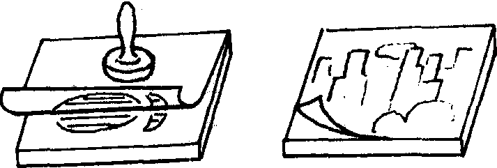 把画稿转移到木版上的过程。亦称过稿。有下列方法:❶直接法。即直接在木版上画稿。❷拷贝复写法。以复写纸将画稿复印到木版上,因为木刻版面与完成的作品是反图象的,所以复写时要将画稿反过来。也可先用透明纸拷贝画稿,再将透明纸反过来复写,最后用毛笔画成黑白稿。❸转印法。亦称反转法。将铅笔、炭笔画稿反转压印到木版上,再用毛笔加工。如果是毛笔墨稿,可先把木版擦湿,再把墨稿反转压印到木版上。❹贴稿法。这是中国复制木刻的上版方法,先用毛笔在薄宣纸、雁皮纸上勾出画稿轮廓,再在木版上涂一层稀薄浆糊,把画稿反贴在木版上。半干时用手轻轻将纸背搓擦去一层,墨稿清晰可见。