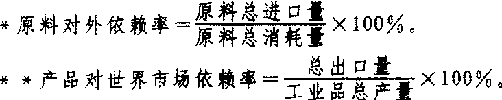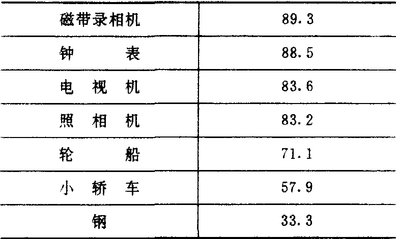 表2 日本主要工业产品对世界市场依赖率** (%) (1985)