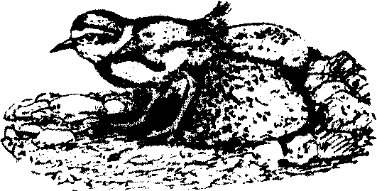 图231 早成雏 (环颈鸻) 早成雏praecoces又称早成性雏鸟、早成鸟。雏鸟孵出时即已发育良好,体被稠密绒羽,眼睁开,在绒羽干后即能离巢活动或能随亲鸟觅食的鸟类。新出壳的雏鸟在3天后就有调节体温的能力。除上述形态、行为和生理特点外,雏鸟的卵壳尚留有一部分卵黄,供幼雏最初几天喙食,借以补充营养。鸡形目、雁形目、鸻形目、秧鸡目、鹤形目、鸨形目等营地面、湿地或水域生活的鸟类都属于早成性鸟。 |