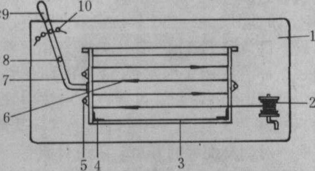 | 释义 | 上线器wiring board安装框线的工具。又名巢框上线板、巢框穿线器。以800×350×25毫米的平木板为座板,在其中央按巢框内围尺寸428×202毫米的大小,四角嵌入角钢,用以固定巢框。在距巢框两侧条10毫米处,分别安有直径为15毫米、高28毫米能转动的圆柱,左二右一,位置都在框线的转角处,用以输送框线(见图)。右下角有一线轴,在轴筒上绕有框线。左边设有一杠杆(木柄),使用时,将杠杆弯曲的一端顶向左侧条,使侧条稍向内弯曲。上线时,把线轴上的框线按图示箭头穿好,转角处都要绕过圆柱,把线头钉在右侧条上方。用手拉紧框线,同时将框线从圆柱上移下,并转动线轴,回收多余的框线,逐渐把框线再次拉紧,直至用手弹框线时能发出清脆的声音为度,再将末端线头钉牢在右侧条下方。最后将杠杆弯曲端离开左侧条,左侧条在弹性作用下恢复原状,使框线更紧。为防止框线拉紧而揳入木材,侧条的所有小孔最好都嵌上金属眼。