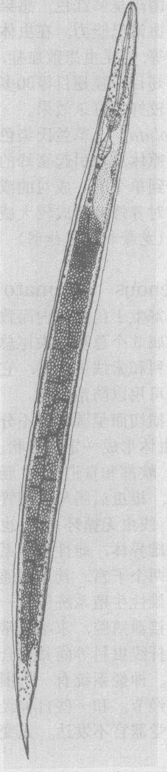 研究利用 研究和用于防治害虫最早和最多的昆虫病原线虫是索线虫总科的索线虫科,以及小杆总科的斯氏线虫科(原称新线虫科)和异小杆线虫科。 索线虫科的种类常见于蚊幼虫、蝗虫、甲虫和飞虱等体内。美国、加拿大、苏联等国用致乏库蚊为大量繁殖寄主,尚难大面积应用。中国湖北、广东等省从20世纪70年代开始用两索线虫属和六索线虫属防治稻飞虱和粘虫的研究。 斯氏线虫科和异小杆线虫科从50年代末以来,一直是研究重点。其优点是: 寄生效果好、杀死寄主较快、寄主范围广、使用安全,而且人工大量繁殖技术已经解决,被人认为是比索线虫更有前途的生物防治类群。早在1930年,美国新泽西州的两个农场就曾试用斯氏线虫科的格氏线虫以防治日本金龟甲获得成功。美国达特奇(S.R.Dutky,) 于1954年从苹果蠹蛾上分离到一种苹果蠹蛾线虫(见图),已以商品名“DD-136”在全世界推广使用。它的寄主已知近250种,包括鳞翅目、双翅目、鞘翅目、膜翅目、等翅目、直翅目和半翅目。苏联用DD-136 防治土壤中的马铃薯甲虫。中国从1978年起陆续从捷克斯洛伐克、美国、澳大利亚等国引进多种斯氏线虫(包括DD-136)和异小杆线虫及其品系,在北京、广东、湖北等省市做室内外试验,防治桃小食心虫、棉红铃虫、菜青虫、茶尺蠖、稻纵卷叶螟、三化螟、大螟、甘蔗条螟、甘蔗黄螟、甘蔗二点螟、粘虫、玉米螟、蔗金龟、黑翅土白蚁等,均有良好效果。 |