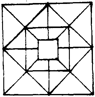 | 释义 | 下三壮语音译,即捉三子棋,广东连山和广西各地壮族娱乐形式。棋格如图:玩者两人,各持置位之子若干,各有标内以便区分。双方各持己子,按一以放置一子在图的方位上,轮流放置,把图的方位放满为止,在放置的过程中,如有一方所放的子,在同一归线(纵、直、横均可)的方位上,排列成三子,就可以叫“三”。一叫“三”,就可以把对方已置放的方位的子压住其一,使其失去叫三的机会。待互相把子放满图的方位时摘去,留出空位作走子时用。两方按图的方位,放马子以后,摘掉双方所被压过的废子,然后走子,走子时有一个规定,先放子者后走之,后放子者先走子,总之不论放子与走子,只要把自己一方的子,排成一线三个,都可以叫“三”。叫了一次“三”,就可以把对方的子压倒一个或摘去一个,打破对方叫“三”的阵脚,叫“三”越多,越能消纳对方的势力,自然可以取胜。