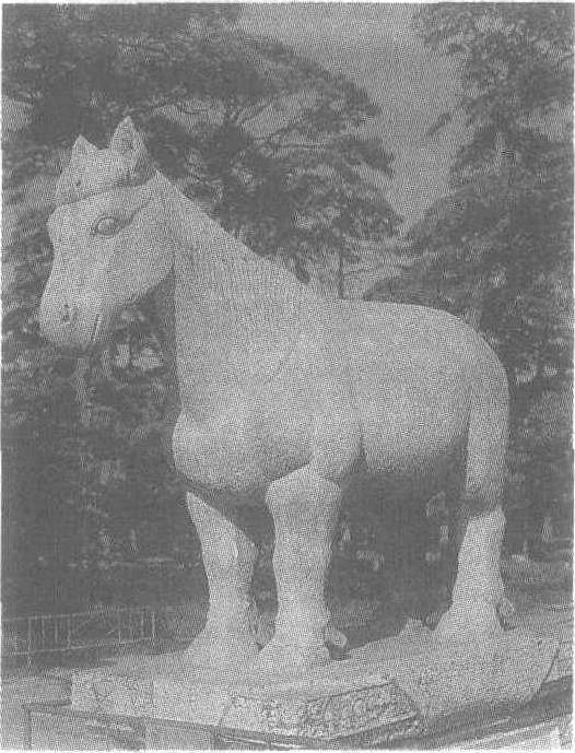 | 释义 | 昭陵石马清初。高180厘米,长270厘米。辽宁省沈阳市北郊昭陵神道东侧石像生之一。以白石雕成。其与神道西侧相对的马分别称为“大白”、“小白”,传说为墓主人皇太极生前四方征战的坐骑,极受主人宠爱。此马长鬃分披颈项两侧,双耳直竖,头微仰,俯视前方,站立于雕满花纹的白石须弥座上。一副安静,温顺的样子,神态兼备,表现了清初石雕艺术水平。昭陵有二,一为唐太宗陵墓,二为清太宗皇太极陵墓。清昭陵亦称北陵。