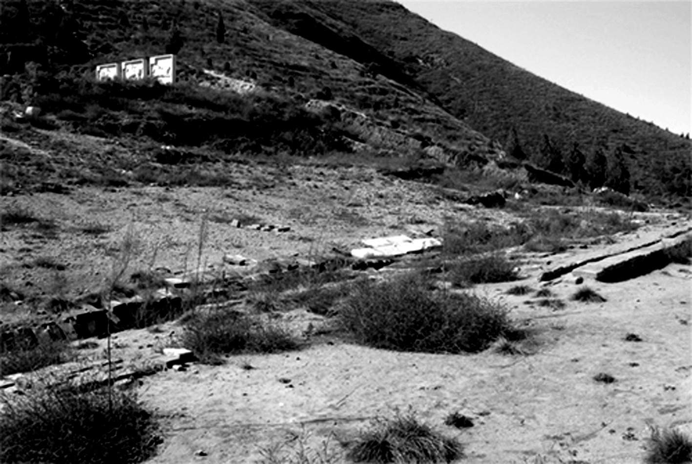 | 释义 | 昭陵祭坛遗址zhaoling jitan yizhi位于礼泉县昭陵乡高窑村陵山北约500米处。唐代文化遗存。遗址平面略呈长方形,南北长86.5米,东西宽53.5米。南高北低,由五阶台地组成,墙基、踏跺依稀可辨。在南边3个台地上,自南而北有寝殿、阁楼、东西庑、大门等建筑遗迹;在第四、第五台地上,除第五台地尚存门阙遗迹外,其余原本可能是空旷场地。遗址内散布大量唐代砖瓦,一些砖牙戳印有工官或工匠名字的陶文,如“官罗通”、“官匠张”、“工匠郑”等。祭坛原有十四番酋石像,现仅存像座7件。遗址内另存宋以后各代祭陵碑13通。