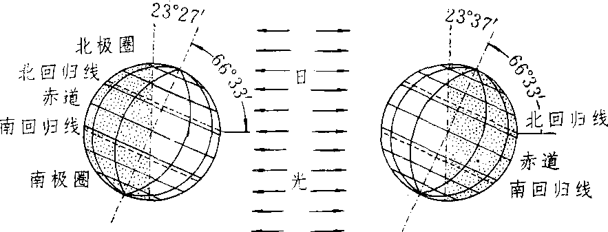 | 释义 | 昼夜形成day and night form由于地球自转和公转而引起的地球上昼夜长短的分布及变化(图1)。地球在运动过程中,总有半个球面朝着太阳(昼半球),这些地方是白天;半个球面背着太阳(夜半球),这些地方是黑夜。地球不断自西向东自转,形成了昼、夜半球交替。一年中除赤道上昼夜长短始终相等外,其他地区昼夜长短是有变化的。在北半球,夏至日太阳光直射在北回归线,各纬度白天最长,黑夜最短;冬至日太阳光直射在南回归线,黑夜达最长,白天最短(图2)。南半球反之。各地昼夜长短的变化,主要原因是地球在公转时,地轴和公转轨道面保持66°33'的倾角。