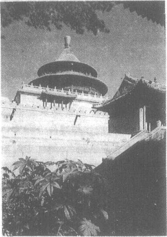 | 释义 | 普乐寺旭光阁清乾隆三十一年(公元1766年)。普乐寺位于河北省承德市避暑山庄东北的平岗上。建筑布局分前、后两部分,前部为汉族寺庙式样,后部有一形制特殊的坛城。坛城高3层,正中建圆形殿宇,即旭光阁。阁高24米,外形与北京天坛祈年殿相似,24间,重檐伞式攒尖顶,覆黄色琉璃瓦,由两层高台相托,周围有8座琉璃小塔相配,规整之中富于变化。阁中置一罕见的大型立体“曼陀罗”,内供上乐王佛。旭光阁顶部的藻井为圆形,使用了3层重翘九踩斗拱,层层缩小。井底雕有二龙戏珠,雕工细腻,金碧辉煌,艺术效果甚为显著。