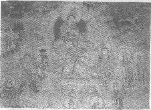 | 释义 | 普贤变(局部)壁画西夏纵130厘米,横215厘米。甘肃省安西县榆林3窟西壁南侧壁画。图中绘一装饰华丽的大象,上驮一莲座。普贤菩萨侧首,双目微下视,若有所思,游戏坐于莲座上。大象脚踩莲花,行进在云雾之中。菩萨、天人前呼后拥。远处的云海之间,山峦危耸,楼阁隐现。图左侧绘唐僧取经图。玄奘在山崖上遥望礼拜,身后站一匹白马,猴相孙悟空牵马侍立一旁。这是出现在壁画上最早的唐僧取经故事题材。图中人物线描细腻生动,山石景色用墨酣畅爽利,与北宋民族传统绘画风格有密切关系。