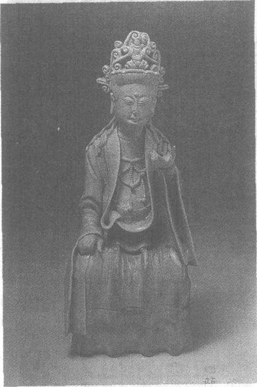 | 释义 | 景德镇窑青白釉带彩瓷观音宋。高25.6厘米。上海博物馆藏。青白釉又名“隐青”、“影青”,釉色白中闪青。景德镇烧青白瓷的窑址,已发现的有湖田、胜梅亭、黄泥头等处。当时这些窑场的产品对东南地区的瓷窑影响极大,各窑纷纷仿效,宋元时期盛烧不衰,形成了青白窑系。此作品是宋代景德镇窑烧制。观音为坐式。头戴宝冠,胸佩璎珞;上身着宽袖衣,下穿花裙。衣褶线条自然流畅,绘红蓝彩,并以贴金装饰,惜色彩多已剥落。衣缘、璎珞宝珠等处施青釉,釉色莹润光亮,脸、胸等处涩胎无釉。观音一手扶膝,一手做手印,低眉垂目,恬静自如,似进入博静境界。底部墨书“大宋淳祐十一年辛亥”款,极为难得。