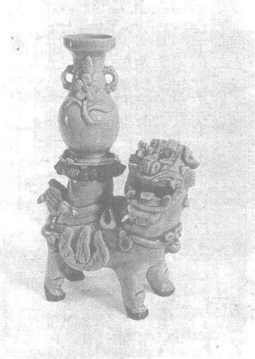 | 释义 | 景德镇窑青白釉瓷狮尊元。通高21.8厘米,长13.4厘米。上海博物馆藏。此尊造型独特,下部为一站立状狮子,双目凸起,獠牙外露,正在吼叫。脸上有无数表示面部肌肉收缩的刻痕,使其愈显凶恶。狮背上驮一瓶:盘口、双系、腹部贴塑小花为饰。器身施青白釉,釉质莹亮。狮的面部、四足及盘口瓶瓶座均以黄褐釉装饰。尊造型构思巧妙,捏塑和刀工虽略见稚拙,但仍不失为元代景德镇青白釉瓷的上乘之作。青白釉见“景德镇窑青白釉刻花瓷执壶”条目。