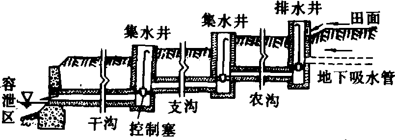 | 释义 | 暗管排水pipe drainage利用地下的管道或洞道,排除田间土壤中多余水分,降低地下水位的排水技术措施。暗管排水系统由吸水管、排水井、各级集水管(农沟、支沟、干沟),集水井和出水口(或扬水站)组成(图1)。多数地区采用明暗结合,暗管不超过两级的地下排水系统。只有在人多地少、生产水平较高的地区,才采用全暗排水系统。