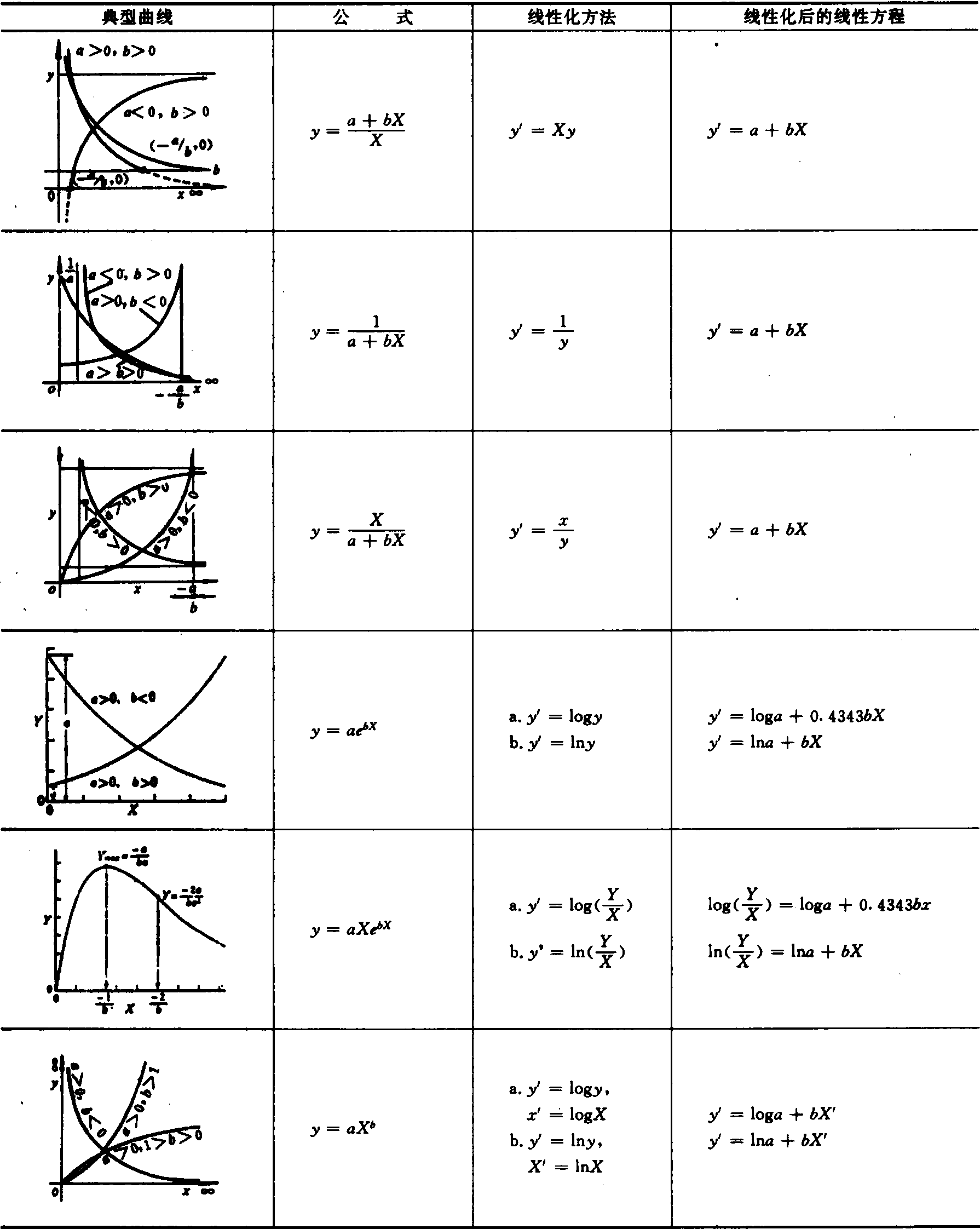 农化试验取得试验数据往往可用不同数学模型拟合,从中选定最适的模型可以缩小模型误差,这就需要从各种曲线回归模式中选择误差最小的一种,同时要注意尽可能在专业知识方面得到合理的解释。 常用曲线回归方程的线性化方法