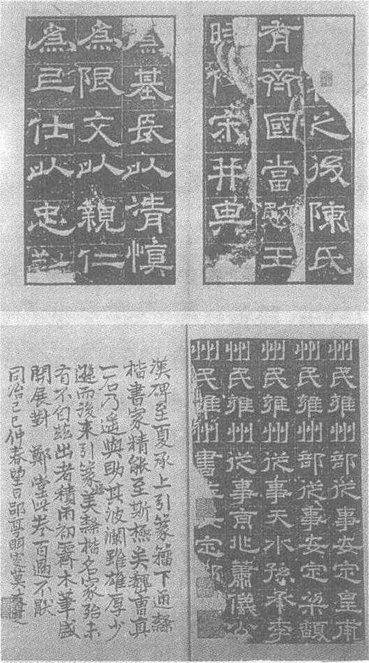 | 释义 | 曹真残碑三国·魏。刻石。据清陆增祥《八琼室金石补正》载:“广汉尺四尺一寸”、“字径一寸九分。”清道光二十三年(即公元1843年)在陕西省西安南门外发现,时碑已残断,只存中间一段,光绪间运至北京,先后归端方、周进所得,现藏北京故宫博物院。此碑隶书阳文共20行,行9—17字不等,有方界格,碑阴文题名2列,列30行,行2—12字不等。碑文记述了曹真一生的重要事迹,故此碑亦称《魏镇西将军上军大将军曹真残碑并阴》、《都督雍凉州诸军事曹真断碑》。清莫友芝在此碑跋中评云:“汉碑《夏承》上引篆籀,下通隶楷,书家精能至斯极矣。魏《曹真》一石,仍遥与助其波澜,虽雄厚少逊,而后来引篆籀隶楷名家,殆未有不自兹出者。”杨守敬《望堂金石初集》云:“至其隶法上承《百石卒史》,下开《王基碑》,唐代韩、梁、卢、蔡皆脱于此。”北京故宫博物院还藏有此碑出土后的初拓本。清汪鋆《十二砚斋金石过眼录》、陆增祥《八琼室金石补正》、杨守敬《壬癸金石跋》、端方《匋斋藏石记》、近人徐宝钧《宝鸭斋题跋》、周进《居贞草堂汉晋石影》、陈直《摹庐金石记》等书均有著录。上海艺苑真赏斋有影印本。