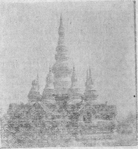 曼飞龙塔 曼飞龙塔也称“笋塔”。在云南省景洪市曼飞龙村后山。始建于1203年。该塔由一圆形基座上的9座舍利塔组成。中心主塔,高16.29 m,基座高3.2 m,直径14.25 m,内层圆形基座的八角各砌出一佛龛,供奉佛像。还有八角8座小塔,高8.3 m。9塔平面呈八瓣莲花形,塔身由塔刹、塔身、基座3部分组成。该塔的组成,与秦国北部13世纪的马哈达特塔相近,也有云南佛塔的特点。全国重点文物保护单位。 |