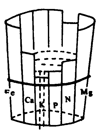 最小养分律的基本内容包括:❶决定植物产量的是土壤中相对含量最少(对植物需要而言),而非绝对含量最少的某种养分。在生产条件下,影响作物产量的最小养分一般是某些大量营养元素如氮(N)、磷(P)或钾(K)和微量元素如硼(B)、锌(Zn)或钼(Mo)等。 ❷最小养分不是固定不变的,而是随条件的改变而变化。当土壤中的最小养分得到补充,满足作物生长对该养分的需求后,作物产量便会明显提高。原来的最小养分就不再成为最小养分。如果不能维持土壤中作物所需养分的平衡,那末,其他某种养分便成为限制作物生长的最小养分。中国农业生产发展的历史和施肥的实践证明了这一论点。20世纪50年代中国农田土壤普遍缺氮,氮就成为当时限制产量提高的最小养分。因此,对一般土壤和作物来说,增施氮肥的增产效果非常显著;到了60年代,随着生产水平和施肥水平的提高,土壤供氮水平相应提高,磷便逐渐成为限制作物产量提高的最小养分,因此,在施用氮肥的基础上增施磷肥,协调氮、磷养分比例,从而获得较好的增产效果;到了70年代,随着农业生产的进一步发展,作物丰产所需要的养分越来越多,单施氮、磷肥往往不能显著提高作物产量,不少地区,特别是长江以南地区,钾便成为最小养分,只有满足作物对钾的要求,才能进一步提高作物的产量水平。 最小养分律揭示了植物生长的养分限制因素和维持土壤中养分平衡的必要性。对合理施肥具有重要的指导意义。最小养分律的不足之处是孤立地看待各个养分,忽视了养分间的互相联系、互相制约的一面。 最小养分律在作物必需的养分中,当其中一种不足或缺乏时,即或其他养分均很充足,也不能使作物增产。即作物产量有受最小养分支配的现象。 最小养分律law of minimum nutrient植物生长受最小养分所制约的定律。1843年由德国农业化学家李比希(J.V.Liebig)在《化学在农业和生理上的应用》第三版中提出。他指出,在作物的各种生长因子中,如有一个生长因子含量最少,即使其他因子含量丰富,也难以提高作物产量。也就是说,作物的产量受数量最少的养分所控制,产量的高低也随这种养分的多少而变化。这一学说突出了产量主要限制因子,便于合理施肥,但同时却把各个因子孤立起来,忽视了养分间的相互关系。这一定律在长期的农业实践中经过多次修正和补充,至今仍在指导农业生产方面起着重要的作用。 |