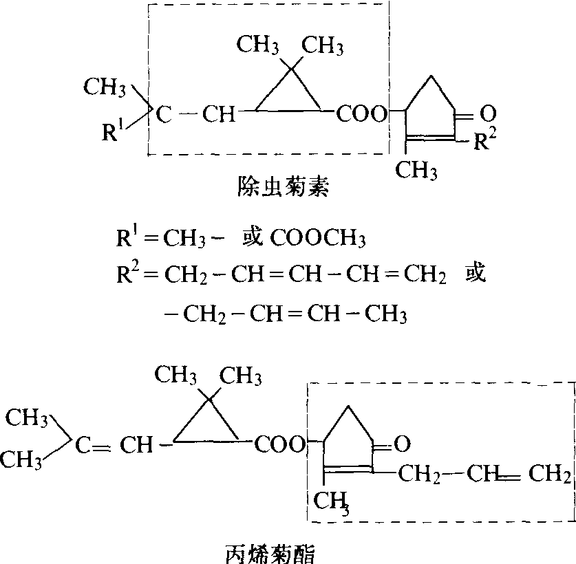 图2 除虫菊素和丙烯菊酯结构式