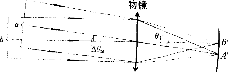 | 释义 | 望远镜的分辨本领wangyuanjing de fenbianbenling望远镜分辨两个邻近物点的能力。指物镜的分辨本领。用刚好能分辨的远方两个物点对物镜的张角来量度,该角称为望远镜的最小分辨角,以△θm表示。△θm愈小,其分辨本领愈大。按瑞利判据,此时两远方物点A(发出一束平行光线a)、B(发出一束平行光线b)在物镜后焦平面上所产生的两个衍射斑的中心A′、B′对物镜中心的张角θ1≈1.22λ/D,D为物镜的直径,λ为光的长。因△θm=θ1,所以,望远镜最小分辨角的表 △θm≈1.22λ/D。 示式为例如,D=50厘米,取λ=550纳米时,可得到△θm≈1.34×10-4弧度≈0.27″。为了减小最小分辨角△θm以提高分辨本领,必须加大物镜的口径。由于大直径透镜制造上的困难和严重的像差,近代大型望远镜都采用不生色差的反射式物镜。并且,为了减弱由于大气扰动而造成对望远镜分辨本领的降低,一般都是把大型天文望远镜设置在高山顶上。