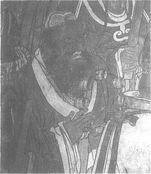 | 释义 | 朝元图(雷公)壁画元。纵77厘米,横67厘米。山西省芮城县永乐宫三清殿西壁南部下层壁画。雷公是古代神话中的司雷之神。道教认为雷霆可以为天代言,“主天之灾福,持物之权衡;掌物掌人,司生司杀”。画面上的雷公为一矍铄的老者,身穿绿色道袍,持雷鼓,正在击鼓。他的长须飘胸,双目圆睁直视前方。与击鼓相配合,口中呐喊,似在行雷。其形神兼备,仙翁的神姿被准确地表达出来。