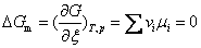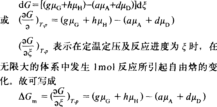 若体系发生一个极微小的变化,以至认为参与反应各物质的组成未变,因而各组分的化学势也不变。这时反应体系自由焓的变化完全取决于各物质的物质的量的微小变化。由吉布斯方程