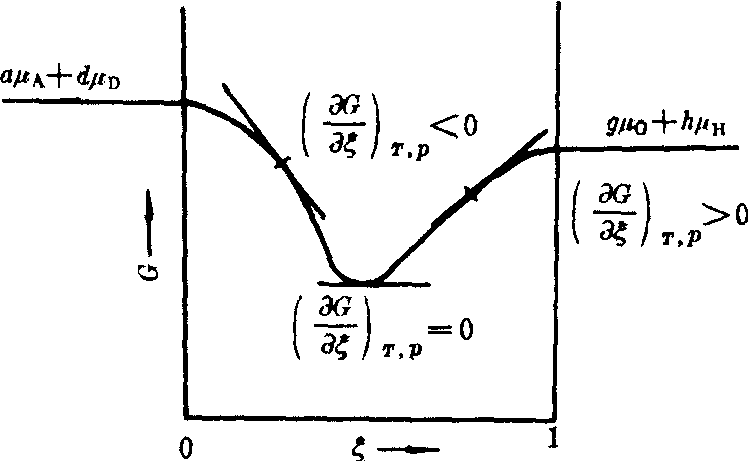 即反应摩尔自由焓等于零。 反应自由焓与反应进度有关,见G-ξ图。