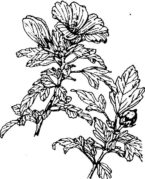通常扦插繁殖,单瓣者也可播种繁殖。病虫害少,偶有棉蚜(Aphis gossypi)等发生,可喷40%乐果乳剂3000倍防治。 木槿花期长,花朵大而繁密,有不同花色、花型。且在夏秋花少时开放,为园林中优良的观花树种,宜丛植点缀于阶前、墙下、水边、池畔,南方各地常用作花篱。 同属植物见于栽培的还有:华木槿(H.sinosyria-cus),别名紫木槿、大花木槿。直立粗壮落叶灌木,叶宽三角状卵形,3裂,长宽近相等。花大而开展,直径8~9cm,青紫色,花瓣极宽,花期9~11月。产中国江西、湖南、贵州、甘肃等地。喜阴湿,可栽培于大树下。木芙蓉(H.mutabilis),别名芙蓉花、拒霜花。落叶灌木或小乔木,叶互生,叶片广卵形至圆卵形,两面有毛,3~5裂,边缘有钝齿。花单生于枝端叶腋,清晨初开时白色或淡粉红色,傍晚变为紫红色,花期10~11月,开于晚秋,故有“拒霜”之名。蒴果球形,果熟期12月。原产中国长江流域,西南及华南栽培甚多。尤以成都自古为盛。栽培品种较多。庐山芙蓉(H.para-mutabilis),与木芙蓉不同处是叶片基部截形,苞片卵圆形,乃江西庐山特产。山芙蓉(H.taiwanensis),全株密被刚毛,原产中国台湾。吊灯花(H.schizopetalus),别名拱手花篮、吊钟扶桑。枝条纤细,叶卵状披针形,先端渐尖,边缘有锯齿。花鲜红色,花梗细长,花大而下垂,花瓣5,羽状深裂成流苏状,并向上反卷,花蕊柱细长,花甚美丽。花期夏、秋季。温室栽培可全年开花,原产东非。吊灯花花大色艳,且花冠下垂,盆栽观赏或庭园丛植均宜。黄槿(H.tilia-ceus),常绿灌木或小乔木,树冠圆形或椭圆形,花黄色,顶生或腋生,数朵排成聚伞花序,花期6~8月。原产中国海南、台湾等省,越南、菲律宾、印度、日本及大洋洲也有分布。在中国华南可作行道树及庭荫树。 木槿shrub altheaHibiscus syriacus L.,锦葵科,木槿属。落叶灌木。2n=80。原产东亚。中国各地有栽培,尤以长江流域最多。分枝多。叶菱状卵形,常3裂,具不规则钝圆锯齿。花单生叶腋,6月起陆续开放,花冠钟形,浅蓝紫色,朝开夜萎。蒴果圆柱形。喜光而稍耐阴,好湿,又能耐旱,性喜湿润肥沃中性土壤,抗SO2等有害气体,萌芽力强,耐修剪,易整形。扦插繁殖。供观赏。茎皮纤维富韧性,花、根、皮可入药。常见变种有重瓣木槿。同属观赏种还有重瓣白木槿等。 木槿锦葵科落叶灌木。又称朝开暮落花。高4m。小枝星状绒毛。叶菱状卵圆形,长3~7cm、宽2~4cm,常3裂,具不整齐齿缺,叶柄长0.5~2.5cm。花单生叶腋,花两性,紫色、玫瑰红色、白色、淡蓝、粉紫色,单瓣或重瓣、半重瓣。类型很多。蒴果卵圆形,径约1.2cm,种子肾形。花期6~10月。原产中国中部,现全国普遍作庭园绿化树种。扦插育苗。花、果、茎药用。茎皮纤维可制绳和造纸。 |