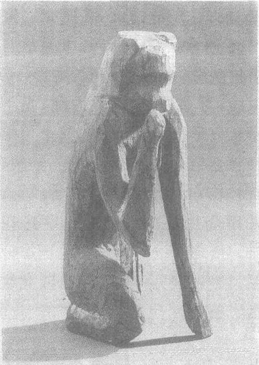| 释义 | 木猴东汉。高11.5厘米。1957年甘肃省武威磨咀子出土。北京中国历史博物馆藏。木猴由一独木雕刻而成。猴左前肢垂直承地,右后肢后曲,跪坐着,右爪持食物往嘴里送,偏着头,注视着手中之物。其上的白、黑、红三色彩绘已大部分剥落,露出木质本色,只有零星的彩绘痕迹尚存。创作者雕刻木猴并不注重细节的处理,而以快捷、写意、近乎半抽象的风格塑造了这一充满灵性、可爱的动物形象。并将它吃食时的瞬间动作栩栩如生地展现在人们面前。猴的眼、牙、鼻等身体部位极为简化。这种准确把握主要特征而大胆略去似是不可忽略的部位的传神作品,在武威出土的其它木雕动物形象中屡见不鲜。表现了东汉时期的高超的木雕水平。