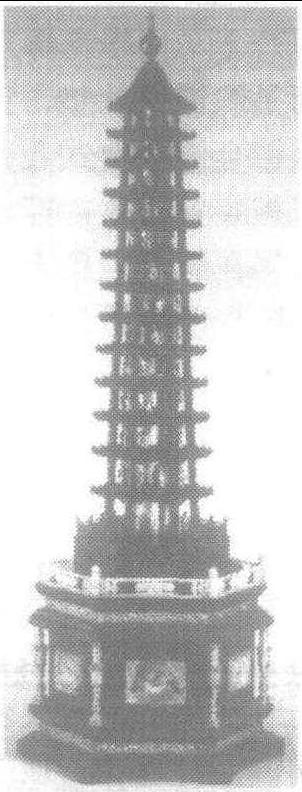 | 释义 | 木质塔式转八仙乐钟清代宫中计时仪器,亦为宫中玩赏性陈设品。此钟是清代宫中内务府做钟处根据乾隆皇帝谕旨,先画好钟样,经乾隆皇帝御鉴批准样稿后依画样制作的。钟高145厘米,直径52厘米,钟形仿我国十三层六方塔。塔下为双层六方座。塔座四周有白玉雕云头和 “寿” 字栏杆。每个座角上立一铜鎏錾花柱。钟座一面嵌钟盘,钟盘周围饰铜镀金雕卷草花纹,另五面均嵌青玉雕兽。钟座体内装有乐箱,上弦后可奏音乐。十三层塔身中,每层有八位铜质镀金仙人,手持宝物随乐声逆行转动,乐起即转,乐止即停。