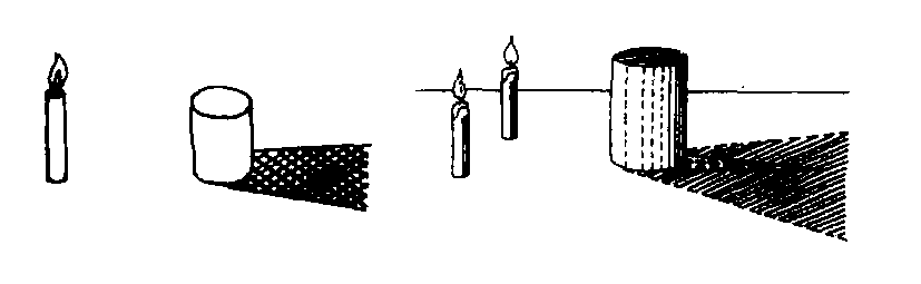 | 释义 | 本影和半影Benying he banying光在传播过程中遇到不透明物体时,在其后方形成的全暗区域称为本影。对于点光源来说,它与物体周缘连线范围的后方区域是物体的本影。如图a所示,将小蜡烛的火焰近似看成点光源,照在不透明的圆柱体上,在其后面出现的阴暗区域为它的本影。若不是点光源,或有多个点光源照在同一物体上,在被照物体的后方,可分为光完全照不到的区域和只有部分光照到的区域,前者称为物体的本影,后者称为物体的半影。如图(b)所示,物体后面完全黑暗的锥形区域为本影,本影周围的半阴暗区域为半影。