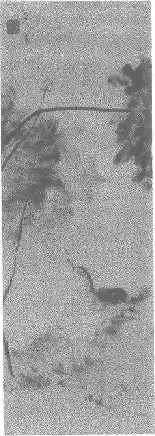 | 释义 | 朱耷荷石水禽图轴清。朱耷绘。纸本水墨。纵114.4厘米,横38.5厘米。辽宁省旅顺博物馆藏。朱耷见《朱耷椿鹿图轴》条目。朱耷曾自称静观新莲而得其神韵。图中绘水塘荷叶,花叶顾盼生姿,花朵或绽开,或含苞待放。湖石上面两只水鸭,一只引颈昂首,一只缩颈独立。作者构图疏简空旷,笔意恣肆奔放。所绘荷叶水墨淋漓,气韵酣畅。水鸭线条飞扬活泼,造型夸张合理,将这种水禽的灵性准确地表达出来。整个画面意境空灵而不乏情趣。款署“八大山人写”。钤<八大山人>白文印。