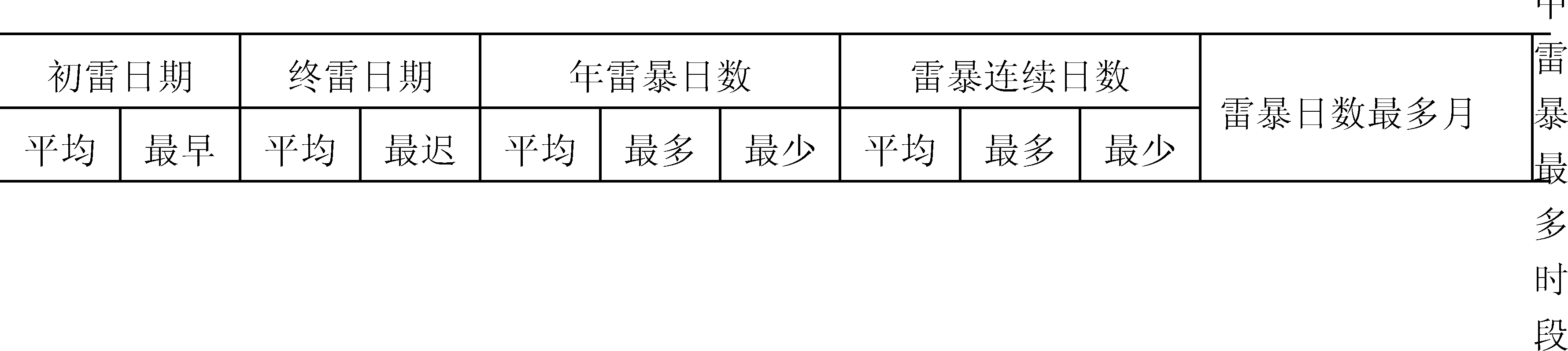 列举出机场一个或多个气象要素实测值统计数据的表格。这些要素有气温、风向、降水、雷暴等。例如,显示雷暴特征的一栏见下表。