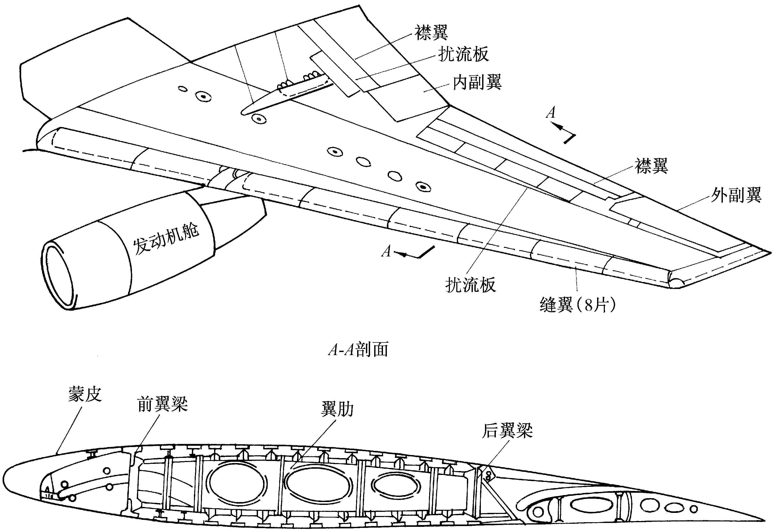 | 释义 | 机翼飞行时用以提供升力的装置。左右对称与机身相固接。横截面的形状叫翼型;左右两个机翼翼尖之间的距离叫翼展;翼型最前端和最后端两点之间的联线叫翼弦;翼展的平方与机翼面积之比叫展弦比。 机翼wing飞机产生升力的主要部件。对称装在机身两侧,内部空间可用以存放燃油、收藏起落架等。机翼外可带装发动机舱和其他外挂物。翼面上安装副翼、襟翼、缝翼、扰流板等,用以起稳定和操纵飞机的作用。机翼是飞机的主要受力构件,其形状、强度、刚度、尺寸对飞机性能有直接显著影响。它由骨架和蒙皮构成。大型飞机机翼的骨架由纵向翼梁和横向翼肋组成。按形状可分为平直翼、后掠翼、三角翼等。按在机身上安装的高低位置可分为上单翼、中单翼和下单翼。按安装的角度可分为上反翼、下反翼和海鸥翼。机翼的主要参数有翼面积、展弦比、翼型、安装角、后(前)掠角等。