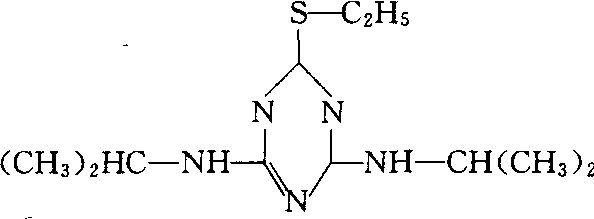 | 释义 | 杀草净dipropetryn三氮苯类内吸、选择性除草剂。化学名称:2-乙硫基-4,6-双(异丙胺基)-均三氮苯。化学结构式如下。纯品为白色固体,熔点104~106℃,几乎不溶于水,易溶于有机溶剂,在土壤中淋溶性差。可通过根部内吸,抑制植物的光合作用。适用于棉田、西瓜田使用,防除一年生禾本科杂草与阔叶杂草,如稗草、碱草、马唐、千金子、苋、藜、蓼、牵牛花、龙葵等。对人、畜低毒,大鼠急性口服LD50>5 000 mg/kg。