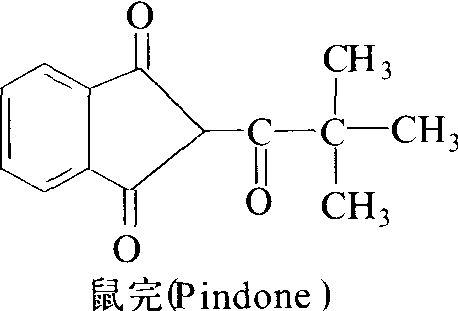 ❷茚满二酮类抗凝血杀鼠剂。重要品种有鼠完、杀鼠酮、敌鼠等。结构式如下: