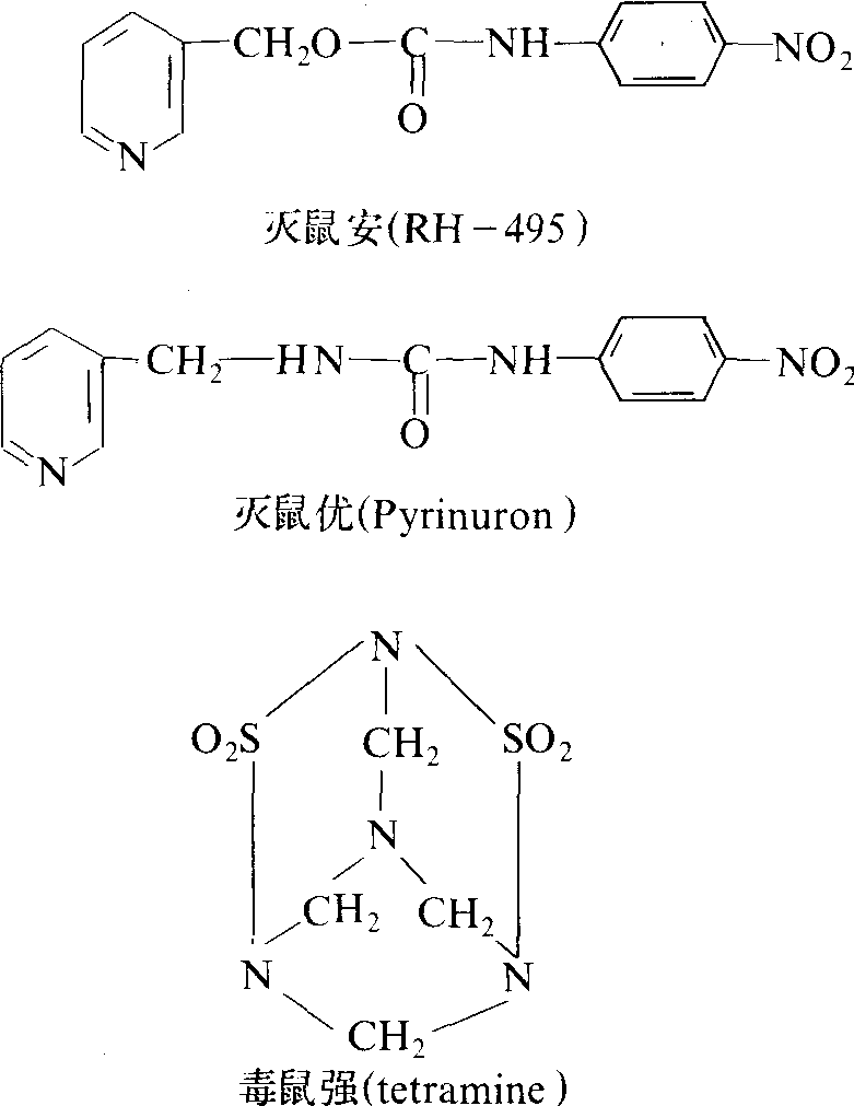 ![]() 毒鼠碱 急性(或单剂量)杀鼠剂 这类药剂常用的有安妥,氟乙酸类,包括氟乙酸钠和氟乙酰胺等品种。对鼠毒性大、在胃肠中吸收快、中毒致死快、效果好。但有易引起其他食肉动物和猛禽二次中毒问题,对人畜也不安全。毒鼠磷和溴代毒鼠磷是有机磷杀鼠剂,作用缓慢,