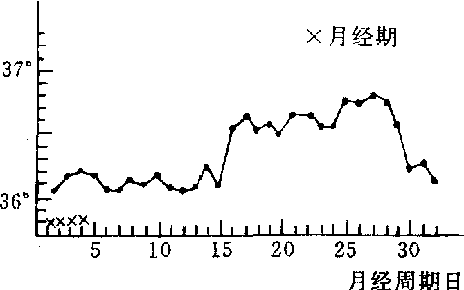 ❶基础体温测定(BBT)。为经过足够睡眠,清晨醒来未作任何活动时测得的体温。正常排卵时为双相型见图4.5-1。排卵一般发生在体温升高前1—3日。