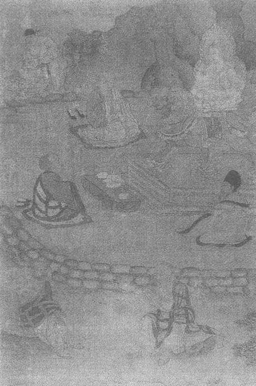| 释义 | 李公麟莲社图轴(宋摹本)北宋。李公麟(见《李公麟五马图卷》条目)绘。绢本设色。纵92厘米,横53.8厘米。江苏省南京博物院藏。此图表现了传说中东晋太元六年(公元381年)高僧慧远等18人在庐山东林寺建白莲社的情景。慧远是东晋时期南方佛教领袖,住庐山30余年,传播佛教,倡导净土宗,影响极大。“18贤立莲社”之说起自唐后期,并无确实的史实根据。图中取庐山谷中一景,18贤者或聚或散,中部有一莲池,池前垒一土坛,坛上三人围坐骑狮文殊像的周围正在举行入社仪式。另一座坛台上,几个人围坐在一起,张望着。池旁又有几个人坐在一条石桌旁边,切磋佛法精义。他们身旁都有泥金题名。18人中间,许多僮仆忙碌着,林间浓雾缭绕,池畔流水潺潺。用笔匀细,山石以晕染表现明暗,不加皴笔,风格质朴。无款,钤〈静寄轩图书印〉。诗塘有明文徵明楷书《莲社记》。此图可能为《大观录》、《江村销夏录》所著李公麟设色《莲花社图》的摹本。
