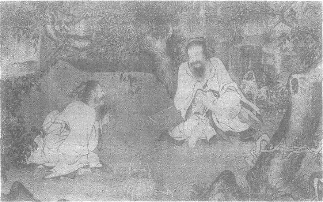 李唐《采薇图》 画卷中伯夷、叔齐对坐于山间石上。正对观者的伯夷,双手抱膝,目光坚定而忧郁; 侧身与之交谈的叔齐则面露笑容,神情开朗。二人都须发蓬松,面容清羸。四周古松盘曲劲拔,岩石突兀坚硬,既渲染出隐居山林的环境,同时烘托出二人坚毅不拔、至死不渝的气节。竹篮与小锄的刻画既丰富了画面构图,又点明了主题。 作品用笔精练,富于变化。人物衣纹线条顿挫有致,方折劲硬,有利于表现粗麻衣服的质感,同时体现出人物坚贞不屈的性格。人物面容则用细润柔和的线条,眼睛的描绘极为传神。古松枝干浓墨侧锋,双勾夹叶; 岩石则用大斧劈皴浓淡相间。以粗犷而简率的笔墨,塑造出丰富的空间层次。 李唐(1050—1150),字晞古,河阳之城(今河南孟县)人。徽宗时画院待诏。南渡时他已近八十高龄。颇受高宗推崇,曾被授予金带。善画山水、人物。对南宋画院及南宋四家产生很大的影响。 |