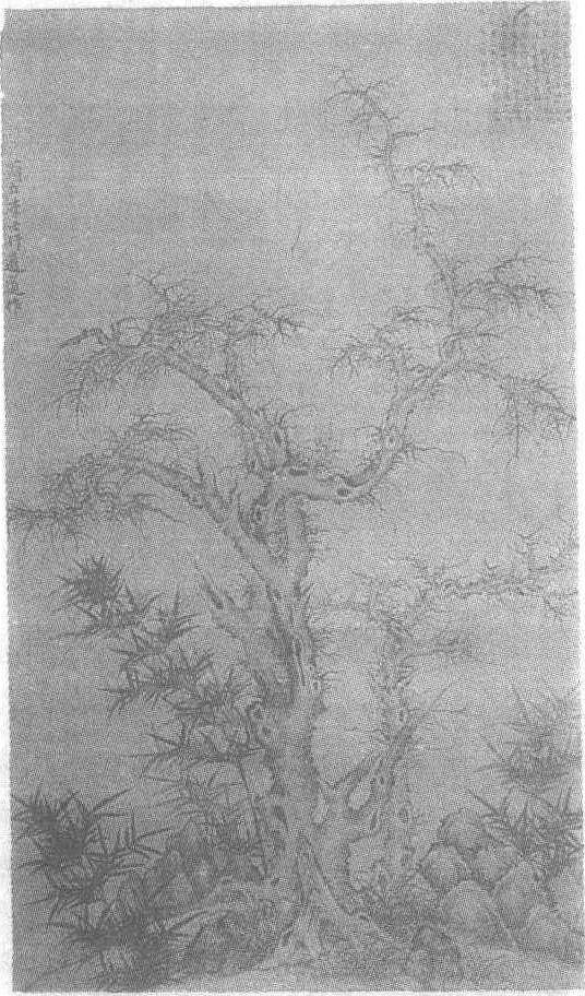 | 释义 | 李士行古木丛篁图轴元。李士行绘。绢本墨笔。纵169.6厘米,横100.4厘米。上海博物馆藏。李士行(公元1282—1328年),字遵道,蓟丘(今北京)人,李衎之子,官黄岩知州,曾向仁宗进献《大明宫图》,封五品官。能诗,善画山水竹石,深得家学,尤以枯木为佳。此图中前后两株古木挺立于土岗乱石之间,树下数丛纤草,左右几簇幽篁。古木状貌奇诡,气韵苍郁,根须错结,裸出于地表之上,宽粗的主干下部被深深地劈开,伤口里面露出道道粗密的筋脉。一侧枝干仿佛遭雷击过一样,斜向折断了,残肢尖利的纤维森然指向冥冥的虚空。其余的枝干交绕蟠曲,扭动着向上伸展,树身疤痕累累。枝如蟹爪,枯细瘦硬,四下张布。作者将视水平线放在画面的下部,老树显得极为高大,舞动的枝干有巨龙落野,挣扎欲飞之势。后人在评李士行枯木图时曾有:“独立寒秋削如铁”,“五月雷霆莫能折”,“鬼状虺隤生意少,龙鳞剥落本根伤,蓟丘深意吾知得,珍重君王别栋梁”等等赞语。道出了李氏笔下那种坚贞不屈的激扬之气。此图笔力遒劲,构图严谨,师法董源、郭熙。坡石以润墨皴染有温湿感,树干以水墨自外轮廓向里细密点染,产生出一种浑圆坚实的立体效果。蟹爪枝则用中锋写出,颇见功力。丛篁摇曳、交映,姿形逼似乃父,并以浓淡不同的墨色表现竹叶的阴阳面,远追文同。画幅左侧上方书:“蓟丘李士行遵道作。”下钤〈李遵道氏〉、〈游戏翰墨〉二方印。右上角有释智𣽂题诗。《墨缘汇观》著录。