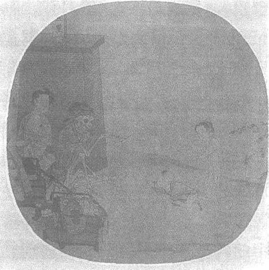 | 释义 | 李嵩骷髅幻戏图页宋,李嵩(见《李嵩货郎图卷》条目)绘。绢本设色。北京故宫博物院藏。此图描绘的是骷髅与一小儿幻戏的情形。图的左边绘一席地而坐的大骷髅,其头戴朴冠,上身着色衣,下身枯骨裸露,右手悬挑戏弄着一个作屈身招呼状的小骷髅,其身后有一妇人袒露胸乳、怀抱婴儿哺乳,神情惶然地注视着幻戏情景,骷髅两侧衬托着用密线重墨绘成的高大墩子和矮小货担,增添了死阴可怖的气氛。图的右边,与大小骷髅相对的是一生命力旺盛的小儿,左手和双足爬地,昂首,前伸右臂,与作屈身招呼状的小骷髅相呼应,小儿身后有一妇人神情惶慌,伸展双臂欲上前阻拦,与骷髅身后惶然注视着的妇人形成比照。小儿两侧明净空旷,后边烘托着充满生机的绿叶。此图在布局上着重对比,生与死、动与静、疏与密、虚与实、轻与重等。线条、色彩和谐地统一在画面之中。在墨笔技法上,运笔工细劲利,形象刻画得生动逼真,设色亦浓淡相宜,是一部寓意深邃、画技高超的佳作。