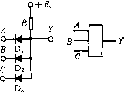 | 释义 | 与门电路yumen dianlu实现“与”逻辑关系的电路。简称与门。与门是具有多个输入端和一个输出端的逻辑门电路。当所有输入端都是高电平1时,输出才是高电平1;否则,只要有一个(或多个)输入是低电平0,输出就是低电平0。上图是三端输入与门电路的原理图和逻辑符号。其逻辑功能的数学表达式为:Y=A·B·C。式中的乘号“·”称为逻辑乘,Y是逻辑变量A、B、C的逻辑积。