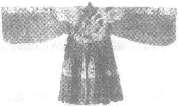 | 释义 | 杏黄祥云蟒妆花纱袍明万历年间缝制。在袍的大衿里部另缝一长条形本色纱,上墨书 “钦赏 ” 二字,可知此袍为明神宗的赏品。袍长144厘米,两袖通长262厘米。袍为交领,右衽,宽琵琶袖,上衣下裳相连式。袍的面料系南京织造,为暗云杂宝纹地妆花纱,纹饰按袍的形式专门设计。肩、胸部织大柿蒂形披肩,披肩边饰海水江崖纹,内为一巨形过肩蟒,蟒布满袍的上身,间饰五彩朵云。通袖饰升龙各一,腰饰行龙八及彩云。裳底边饰海水江崖。技法为彩纬提花,颜色有黄、香黄、杏黄、石青、深蓝、月白、豆绿、蓝绿、白、金等。由于使用了粗而松散的彩纬,其花纹具有刺绣的效果。妆花采用通梭和局部挖梭的织造技术,使织物不失其轻薄凉爽的使用效果。