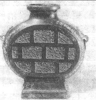 | 释义 | 杜陵扁壶西汉永始元年 (前16)。高18.2、腹径17.3、口径6.6厘米。腹部扁平,短径侈口,长方足,底空心。腹部两面有纵横交错的方格纹,格内均饰羽纹。肩部有两耳,装有活环,壶肩左右两侧刻有铭文。左侧为:“护昌守春夫宗掾通主守左丞博守令并者。”右侧为:“杜陵东园铜壶容二升重四斤八两永始元年併工长造。”属西汉杜陵(宣帝陵)东园内的铜器。罗振玉原藏,现藏旅顺博物馆。