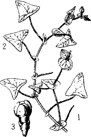 | 释义 | 杠板归perfoliate knotweedPolygonum perfoliatum L.,又称犁头刺、蛇倒退。蓼科,蓼属。多年生蔓性草本。生于水沟旁或灌木丛中。分布几遍中国;亚洲其他国家也有。茎红褐色,有棱,有倒生钩刺。叶近三角形,上面无毛,下面沿叶脉疏生钩刺。花小,两性,组成顶生或腋生穗状花序;花被淡红色或白色,果时增大成肉质,为深蓝色。瘦果球形,包于花被内。花果期夏秋季。茎叶供药用,有止咳、解毒、止痒作用,治毒蛇咬伤效果尤佳;浸液能防治蔬菜害虫;根有鞣质,可提取栲胶;叶可制取靛蓝染料。