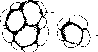 条黑粉属 1.冬孢子 2. 不孕细胞 |