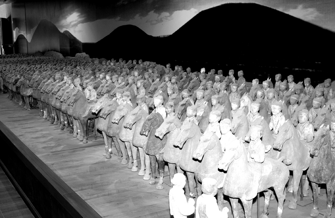 | 释义 | 杨家湾彩绘骑马俑yangjiawan caihui qimayong西汉陶俑。1965年咸阳市红旗公社(今咸阳市渭城区正阳镇)杨家湾汉墓陪葬坑出土。共583件,分大小两种,大者通高69厘米,马长55厘米;小者通高57厘米,马长50厘米。俑身穿红、白、绿、紫等色服饰,手作持缰或执器械状。马身绘有鞯子和辔头,有的静立,有的嘶鸣,造型壮美,制作精良,在俑坑中构成了雄伟的骑兵阵。大部分马的臀、尾部和俑的脊上,刻画有各种不同的数字。骑俑从腰部与马身分开另外制作,双臂从肘部弯曲作握缰状。马尾亦另外制作,可以取下或安置。现藏咸阳博物馆。