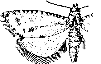 | 释义 | 松梢小卷蛾orangspotted shoot mothRhyacionia pinicolana (Doubleday),鳞翅目,小卷蛾科。分布于欧洲及中国的东北、华北。成虫翅展19~21 mm,体红褐色;前翅狭长,红褐色,有10余条银色横带,前缘有钩状纹。末龄幼虫体长约9mm,体红褐色。年生1代。以幼虫在被害梢内越冬。主要为害油松。幼虫蛀食新梢,使梢部枯萎易于风折,影响油松生长。以剪除被害梢;灯光诱杀成虫;喷洒药剂毒杀幼虫为主要防治措施。