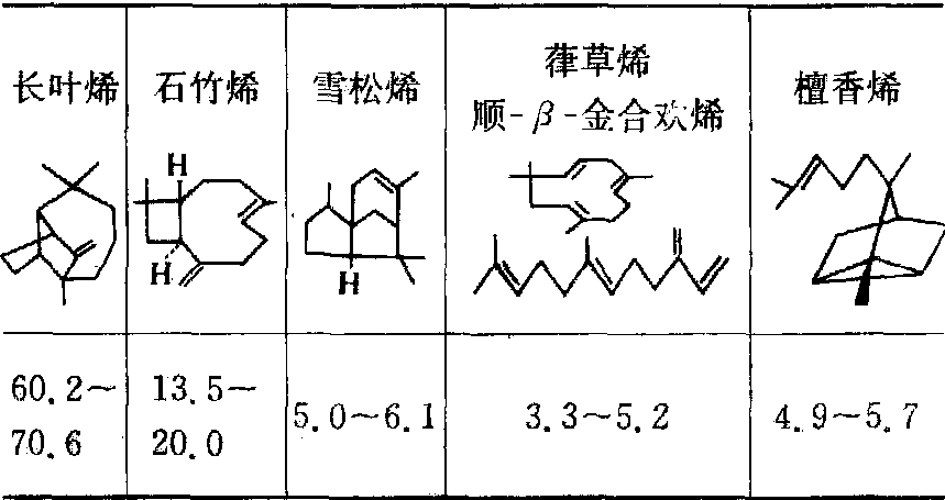 表2 马尾松重级松节油的主要组成(%)