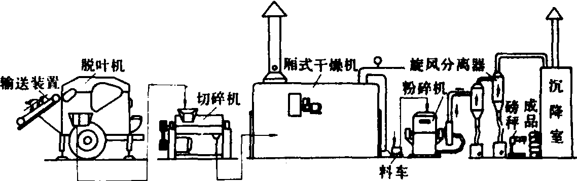 松针粉加工设备 QJ—1—390型切碎机的结构和工作原理均与卧式切菜机相似(见切菜机)。刀片线速度在35米/秒以上,以破坏针叶表面的蜡质层,提高干燥速度。该机切碎长度可调,成品不结块,生产率为230千克/小时,需用功率7.5千瓦。 箱式干燥机由长方形干燥室、散热器组、风量分配机构、锅炉、通风机、筛架、蒸气管等组成。该机为多层、中温、分批、慢速干燥型,采用蒸气进行热交换。结构简单,安全可靠,产品质量稳定,但劳动强度大,热效率低。 |